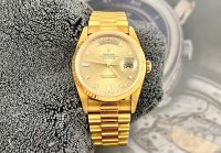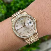 Rolex 5 số 18238 vỏ vàng đúc 18k full gold mặt tia vàng cọc số kim cương zin