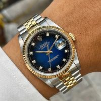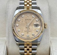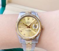 Rolex 5 số 16233 demi vàng đúc 18k mặt tia vàng cọc số kim cương lớn