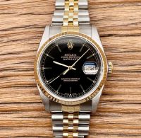 Rolex 5 số 16233 demi vàng đúc 18k mặt đen cọc index