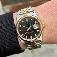Rolex 5 số 16233 demi vàng 18k mặt đen hiếm gặp cọc số kim cương lớn