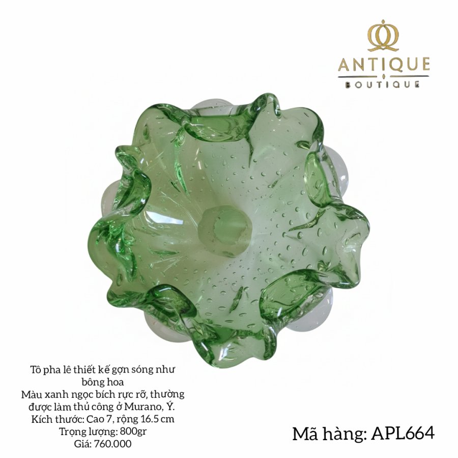 Tô pha lê thiết kế gợn sóng như bông hoa màu xanh ngọc