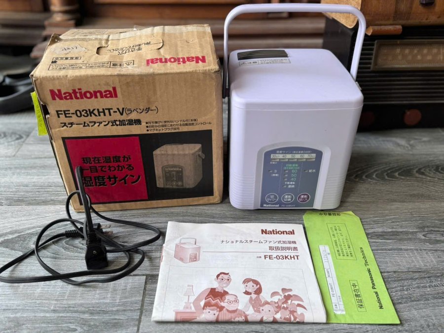 Máy tạo độ ẩm National Japan. Kt: 20x21x22cm. Thiết kế rất đẹp, màu oải hương dịu mắt. Em