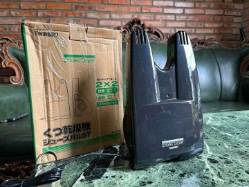 Máy sấy giày Twinbird Japan. Điện 100V- 170W. Có chế độ sấy riêng cho giày da. Hẹn giờ tắt