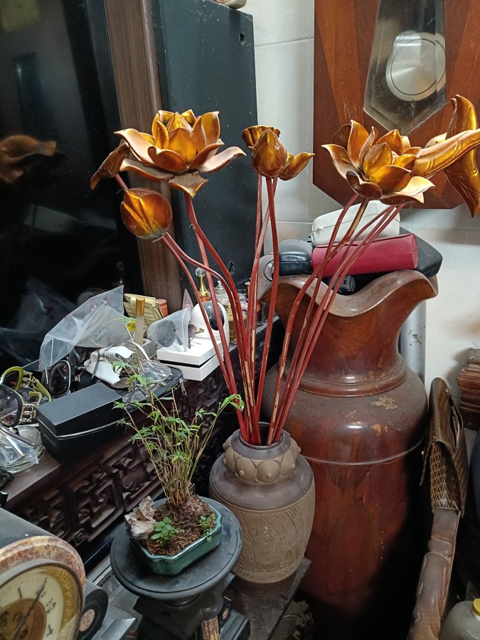 Bình sành + Sen gỗ.( Hết ah)