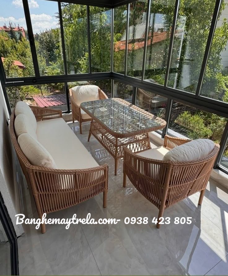 Bàn ghế sofa mây nhựa phòng khách