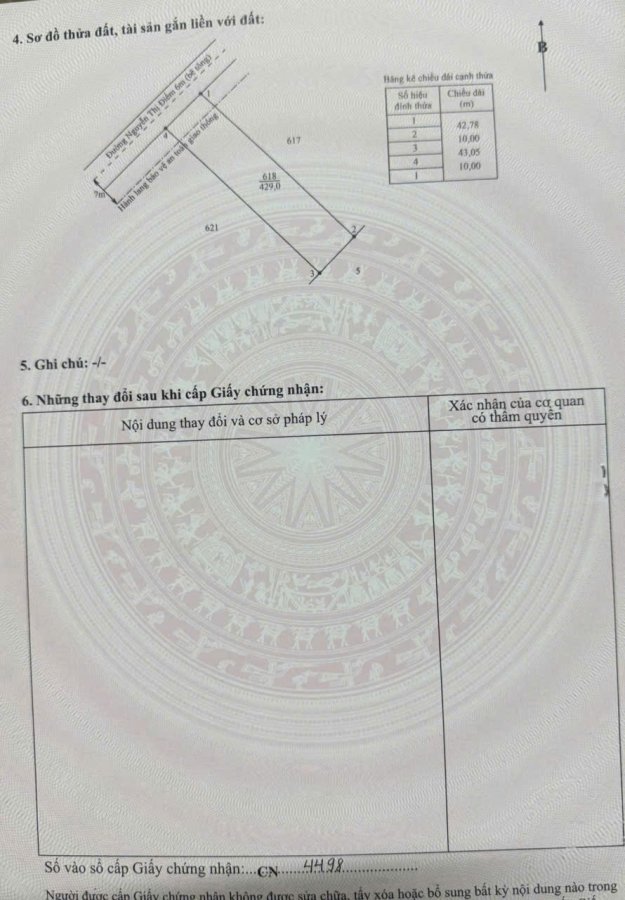 Bán 4 lô thổ cư liền kề mt đường Nguyễn Thị Điểm , xã Tân Bình ,Tân Trụ dt 215m2 giá 1 tỷ