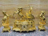 Bộ đồng hồ tượng Pháp cổ : Nữ thần chiến tranh lắc kê vàng - thế kỷ 19