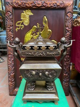 4.500.000Lư đồng Công Giáo cực đẹp , chất ! + Cao : 35 cm + Rộng : 32 cm + Nặng : 6, 3 kg