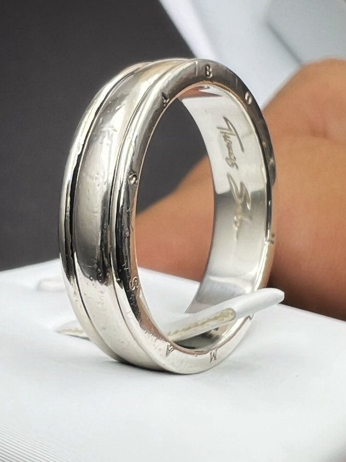 Nhẫn bạc 925 hiệu Thomas Sabo phôm tròn hoa văn sắc nét rất đẹp, size 20mm - bản ngang 6mm