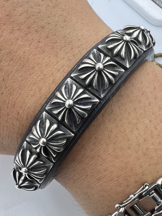 Vòng da phối bạc 925 Chrome Hearts phôm bự hoa văn sắc nét rất đẹp, đeo được 2 nấc (19cm v
