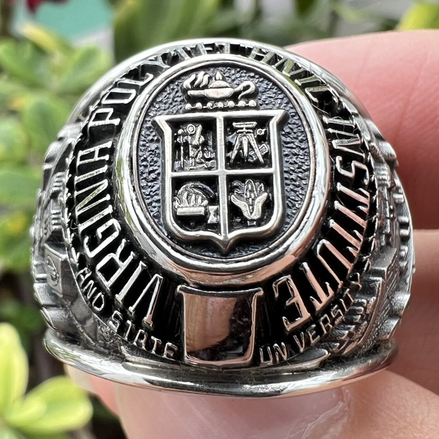 Nhẫn hợp kim học viện công nghệ Virginia năm 2020 mới cứng phôm khủng long hoa văn sắc nét