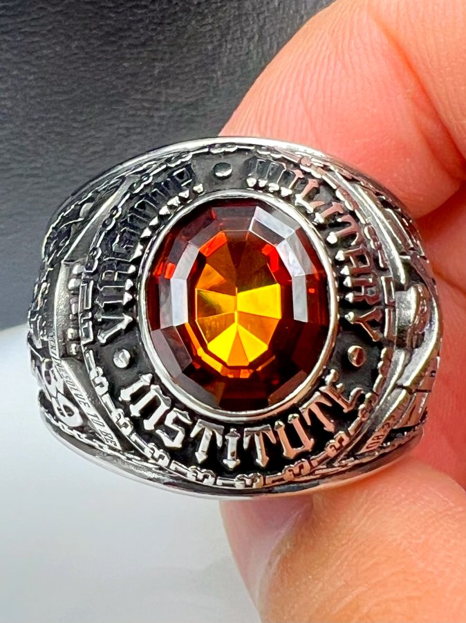Nhẫn hợp kim U.S Coast Guard Academy năm 2014 phôm bự hoa văn sắc nét đá vàng hổ phách đa