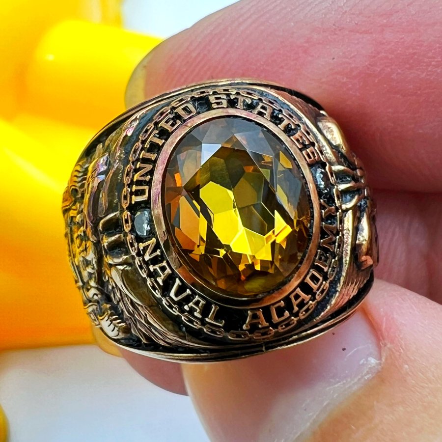 Nhẫn vàng 14k U.S Naval Academy năm 2015 hoa văn sắc nét đá vàng đa giác và 2v soàn vệ tin