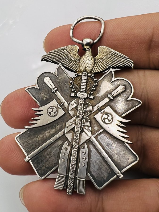 Mặt huy hiệu bạc khối thế chiến thứ 2 QĐ Nhật hoa văn sắc nét rất đẹp, size 42x68mm, nặng