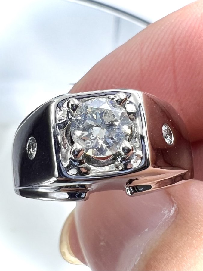 Nhẫn vàng trắng 14k đính full soàn thiên nhiên (2v 2.3li viên chủ 5li) trắng tinh rực lửa