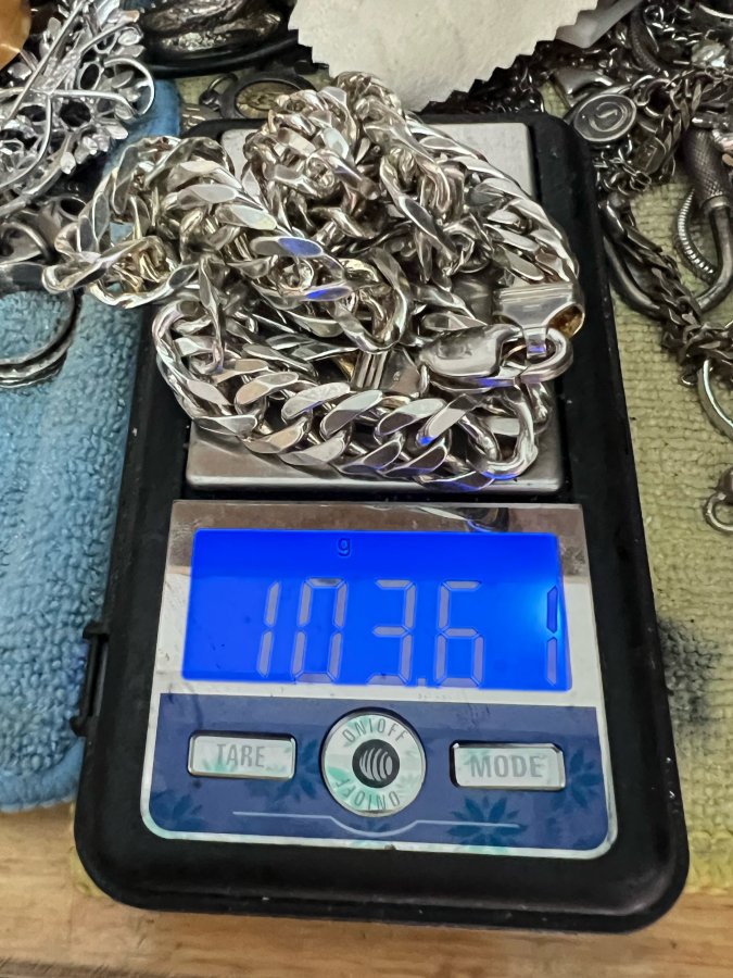 Dây chuyền bạc 925 italy phôm bự kiểu dây khoen lật vát cạnh rất đẹp, dây dài 58cm tròng đ