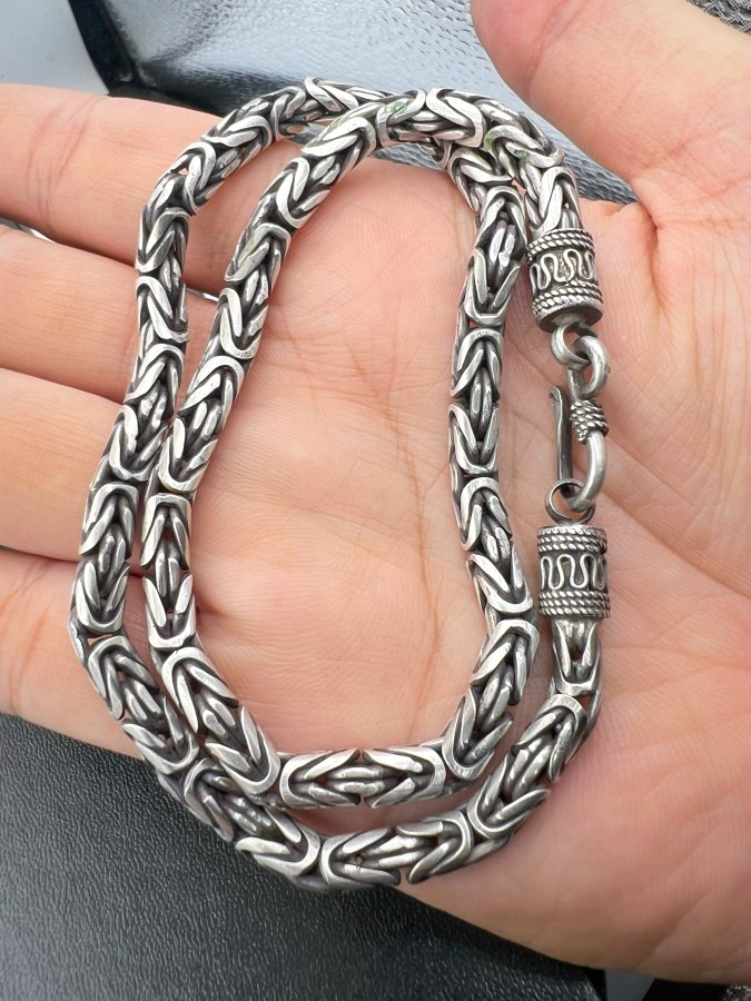 Dây bạc 925 Nhật phôm bự ống tròn hoa văn sắc nét rất đẹp, dây dài 46cm - ngang 6mm, nặng