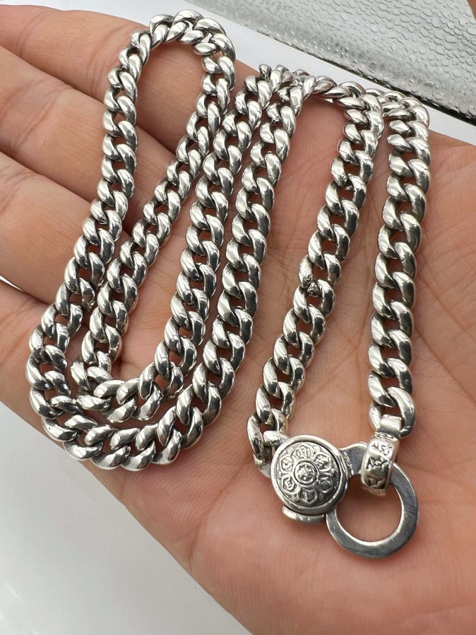Dây chuyền phật giáo bạc 925 phôm bự khóa gài hoa văn sắc nét rất đẹp, dây dài 55cm - bản
