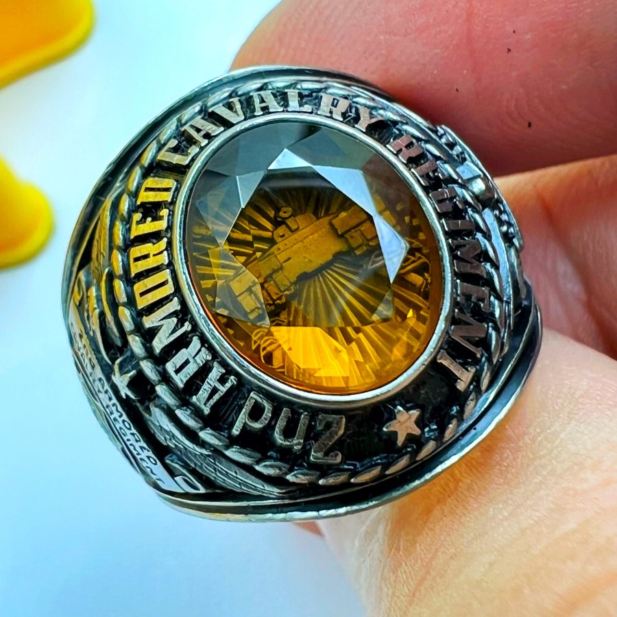 Nhẫn hợp kim 2nd Armored Cavalry Regiment - Dragoons 2 phôm bự hoa văn sắc nét đá vàng đa