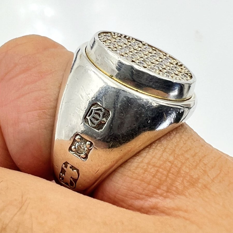 Nhẫn bạc 925 ốp vàng đemi 2 màu hiệu Velvet Lounge đính full soàn Cz rực lửa, bên hông tri