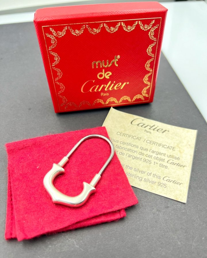 Bộ khoen Móc bạc 925 hiệu cartier hoa văn sắc nét ít gặp rất đẹp, còn đủ hộp sổ túi nhung,