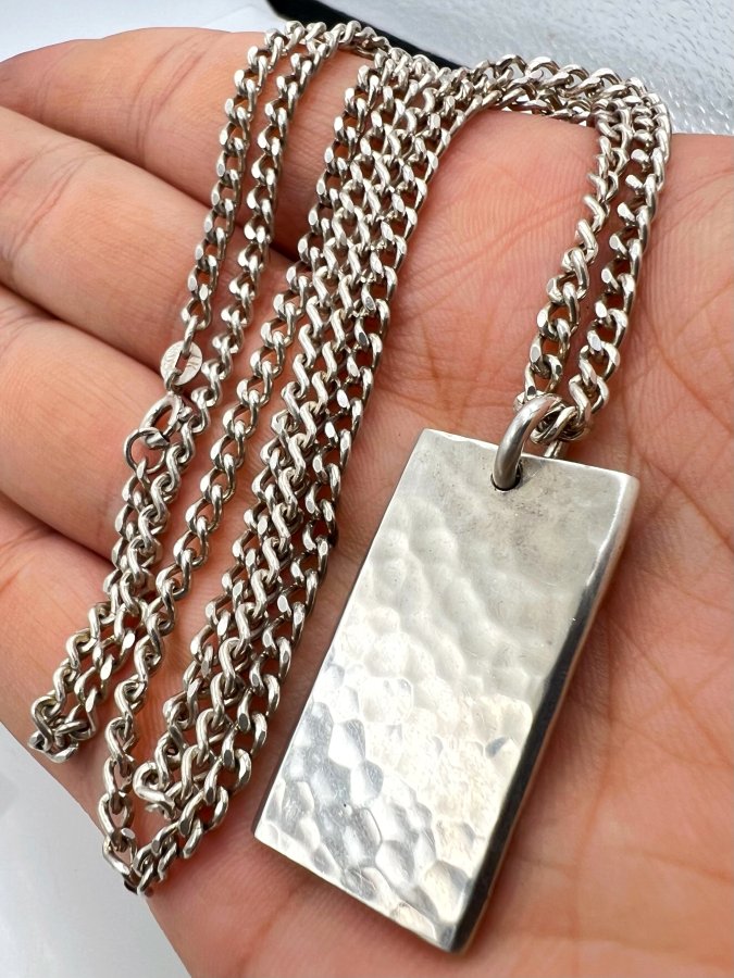 Bộ dây chuyền và mặt thẻ bài bạc 925 Nhật mới tinh hoa văn gõ búa rất đẹp, dây dài 65cm tr