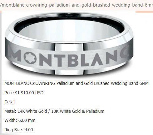 Nhẫn vàng trắng 18k vàng và paladi hiệu Mont.blanc Crownring mới tinh phôm tròn hoa văn r