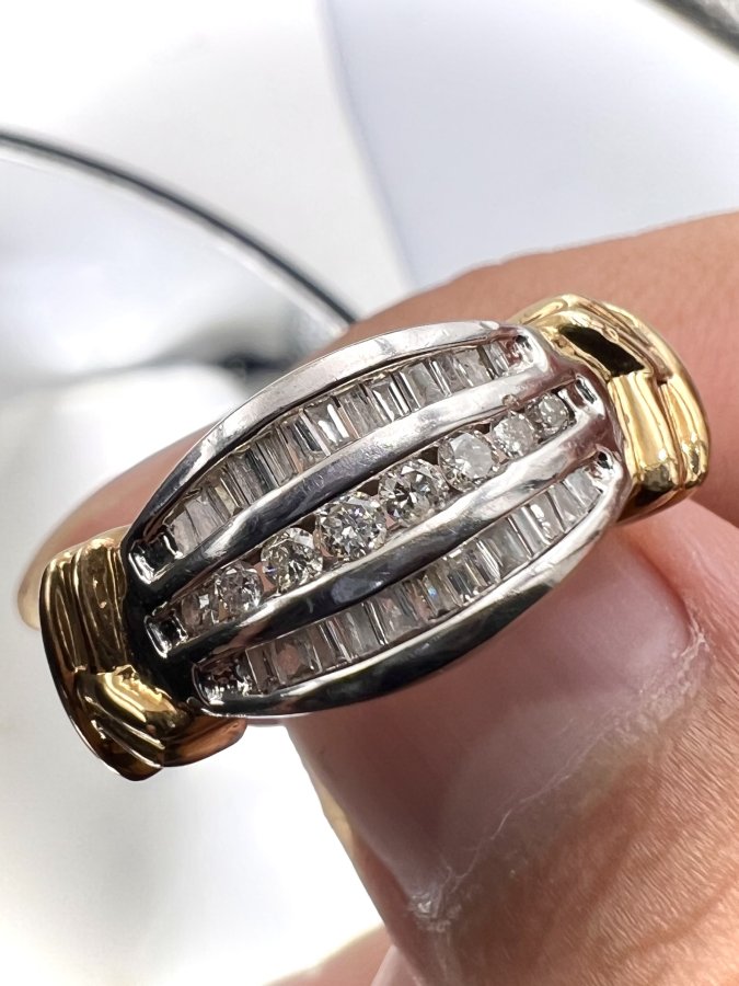 Nhẫn vàng 14k italy đemi 2 màu đính 8v soàn thiên nhiên 1.3li rất đẹp, size 16mm - ngang 4