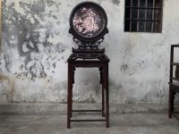 Bình phong gỗ trắc khảm ốc đỏ lửa kt 72-50 tích văn vương cầu hiền