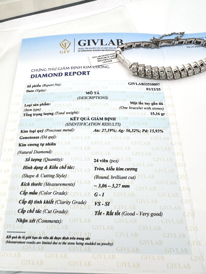 Lắc bá cấm vàng trắng 7k Nhật (27.2% vàng, 15.9% Paladi, 56.3% bạc) mới tinh đính 24v soàn