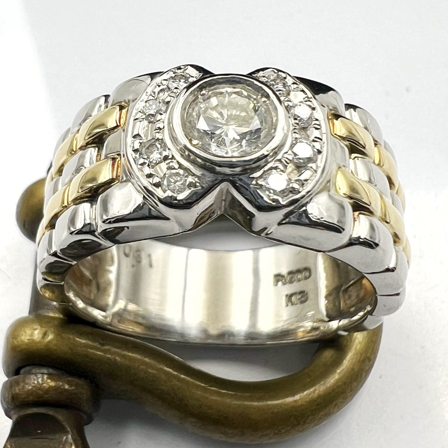 Nhẫn Rolex HK vàng 14k đemi 2 màu (trắng - hồng) mới tinh đính 14v soàn thiên nhiên 2.2li