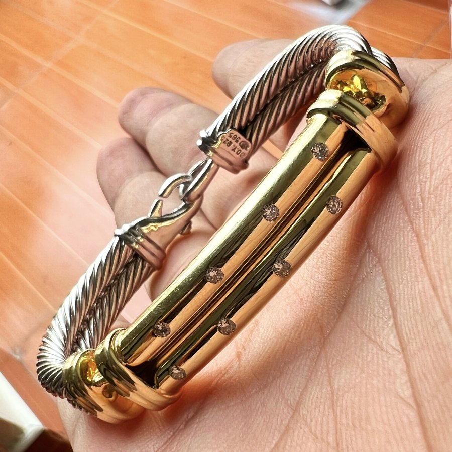 Lắc bạc 925 Đemi vàng 14k hiệu david yurman mới tinh hoa văn sắc nét đính 8v soàn thiên nh