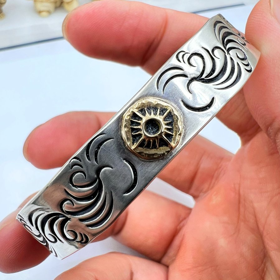 Vòng bạc 925 ốp vàng 18k hiệu Arizona Freedom phôm bự hoa văn sắc nét rất đẹp, free size 6