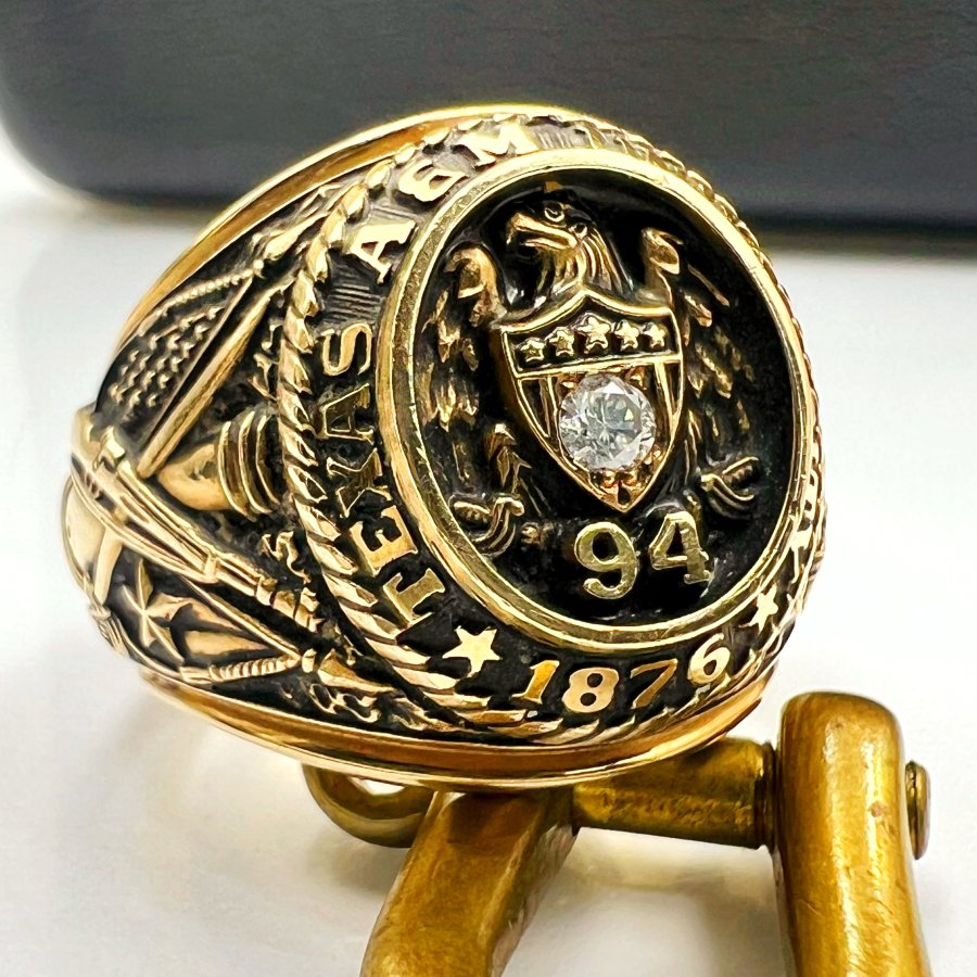 Nhẫn vàng 10k trường ********** Texas A&M năm 1994 mới cứng phôm bự hoa văn sắc nét logo đại