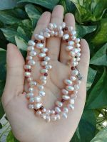 Vòng cổ ngọc trai trứng ánh cam mix ngọc hồng lựu