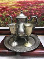 70s Bộ bình ly mạ Bạc Roger USA trang trí.
