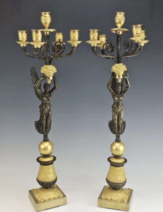 Đôi Chân Nến Thiên thần bronze mạ vàng Pháp Empire 5pcs 65cm trang trí.