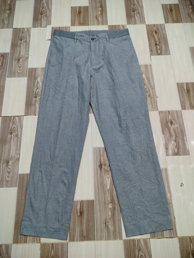 Eo 80>86 Uniqlo công sở bo đầm eo , xám ghi cotton co giãn ít chất vải đời mới xịn chất