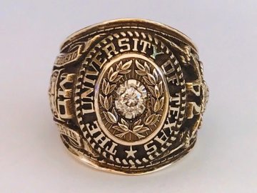 Kính phố vàng 10k. Đại học TEXAS 1974. Logo bông lúa gắn viên xoàn thiên nhiên 3ly6 trắng