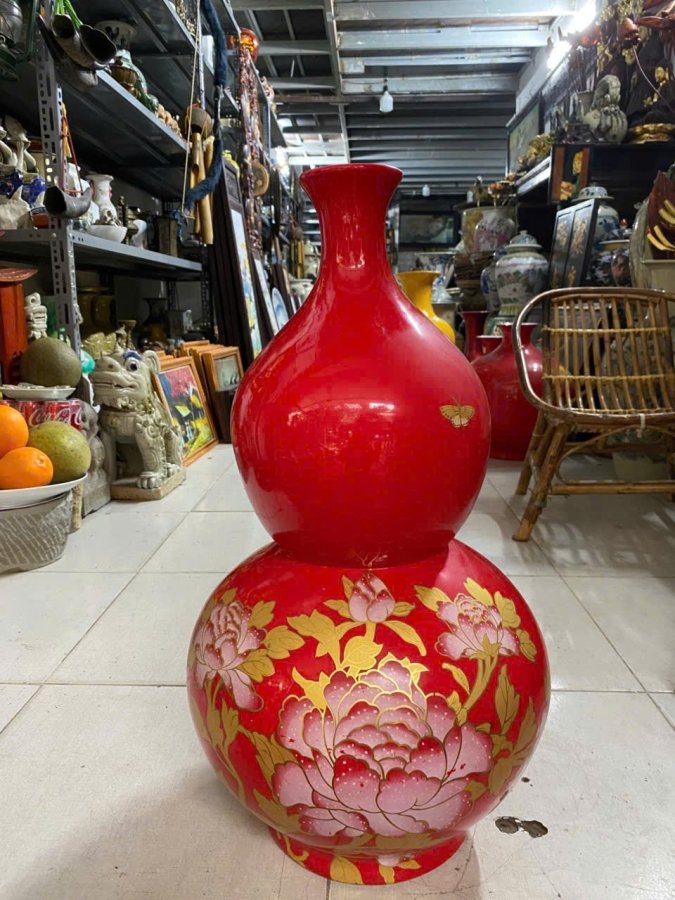 Bình hút lộc, dáng hồ lô tích Mẫu Đơn - Hoa Khai Phú Quý