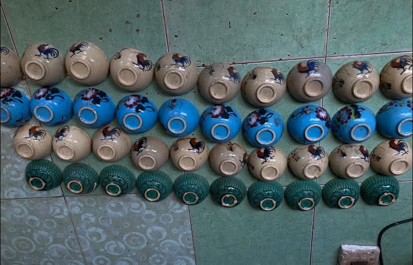 Đôi bát úp Tàu cũ , men huyết đỉa , tích Lân Giáo Tử