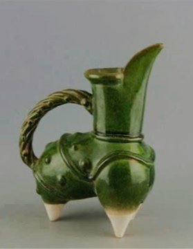 Cao 22cm*17,5cm*9,5 cm. Tước ******* tam túc men lục. 1650k