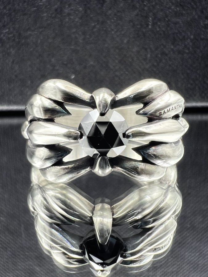 Nhẫn bạc 925 hiệu Samatha Kingz hoa văn sắc nét đính đá đen đa giác rất đẹp, phôm bự ôm ta