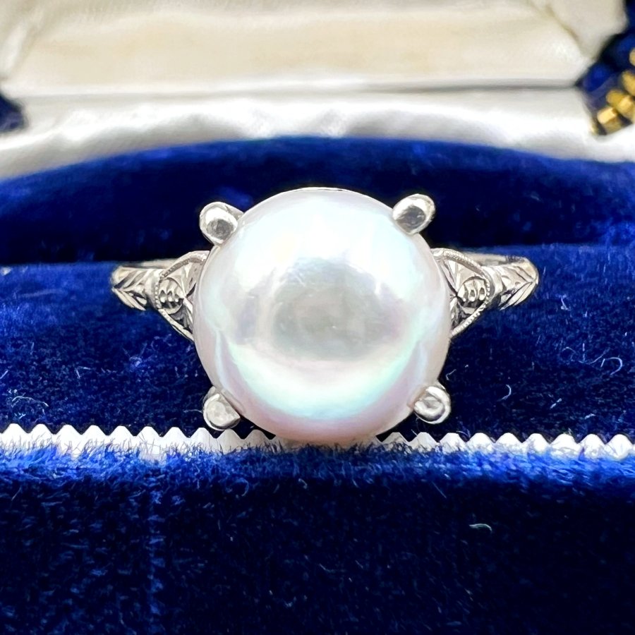 Nhẫn bạch kim 99% (patin 70% + paladi 29%) Nhật mới tinh hoa văn sắc nét đính ngọc trai t