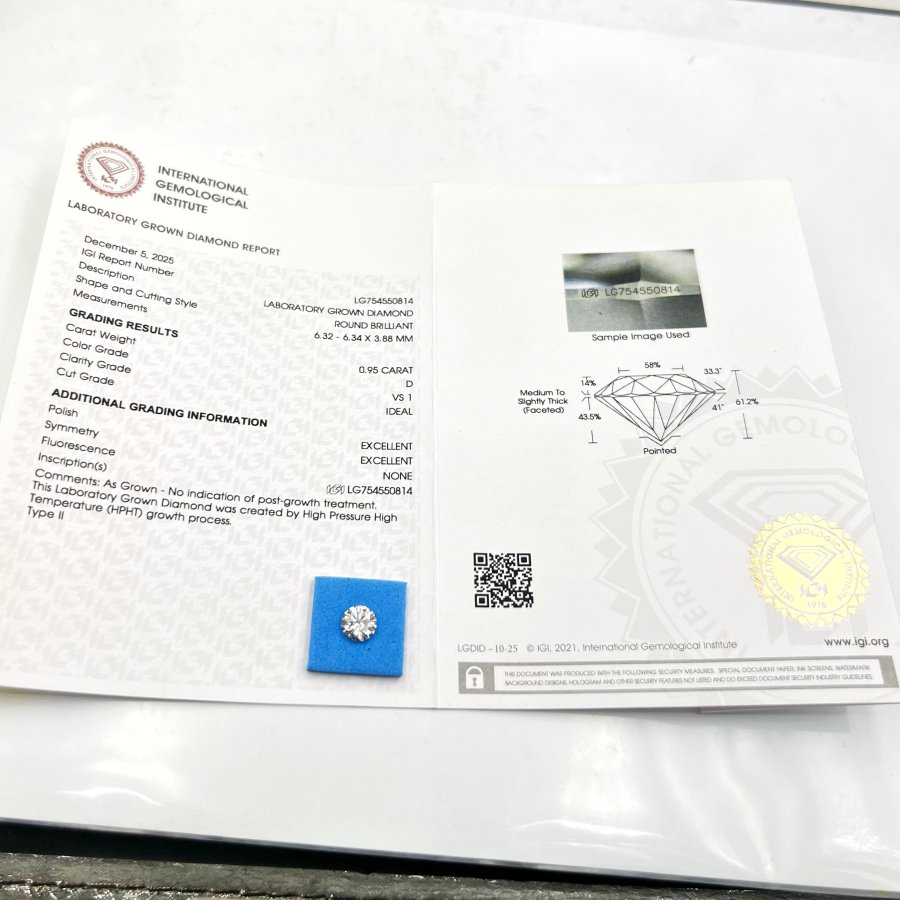 Viên soàn CVD 6li3 có mã số cạnh và giấy kiểm định IGI (nước D - sạch Vs1) rất đẹp, giao t