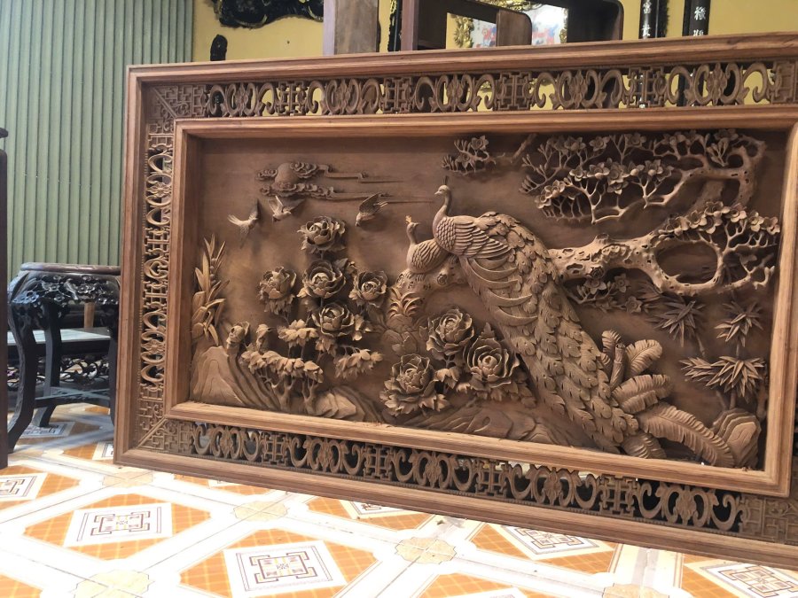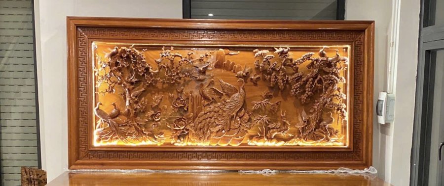 Bộ tranh phu thê viên mãn gỗ gõ đỏ kích thước 2m17x107x11 cm khung tranh dầy 12cm