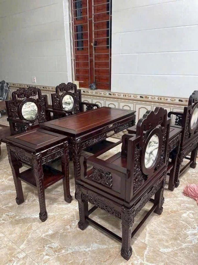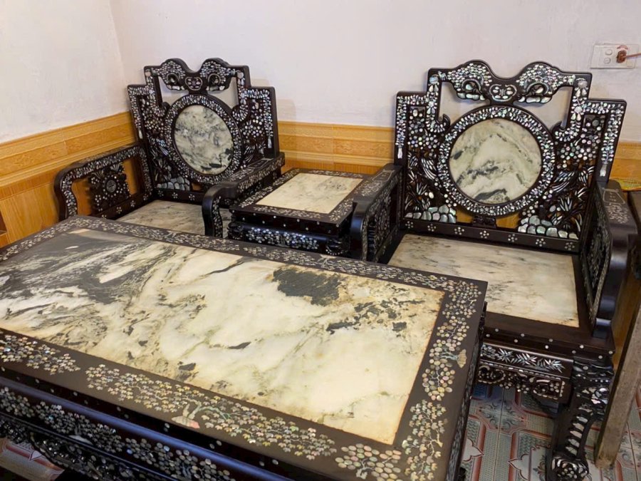 Bộ ghế vách tàu khảm ốc gỗ gụ 7 món