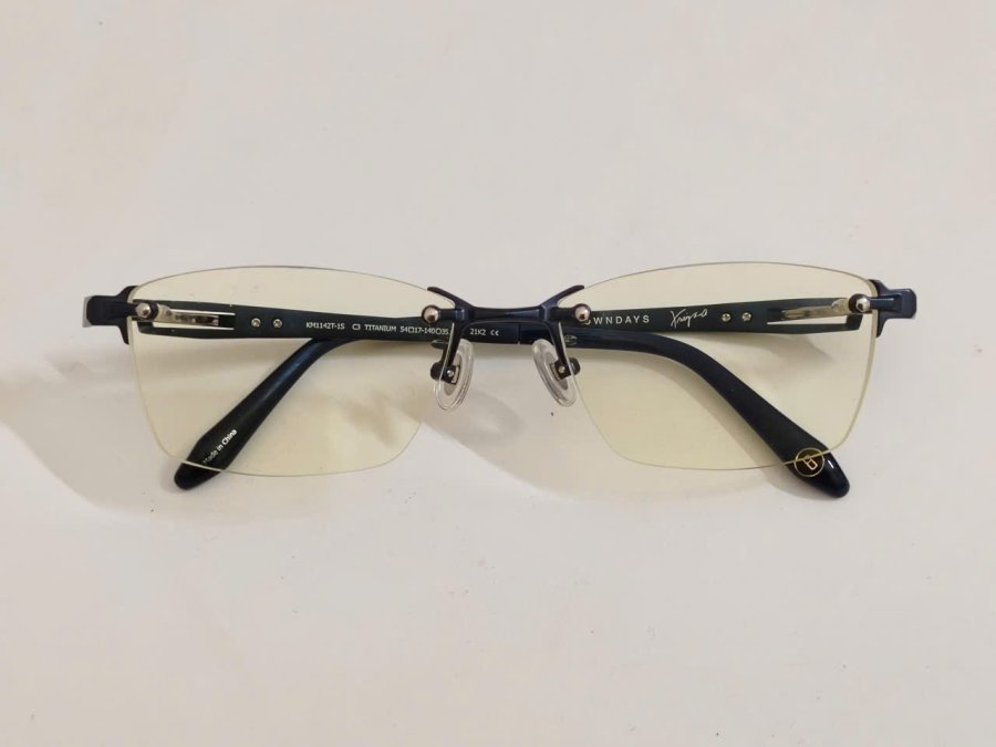 (TT) Gọng kính khoan 3 mảnh titanim màu màu xanh Owndays K.moriyama (KM1142T-1S C3).