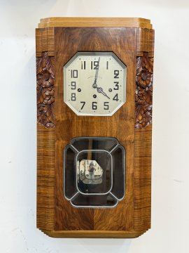 Đồng hồ treo tường Irod Pháp xưa chơi 2 bài nhạc Thùng gỗ dáng dài dục chạm hoa văn hai b