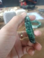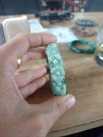 Vòng cẩm thạch A chạm hoa mai. Bản 10mm, ni đo lọt lòng 51mm. Giá 800k